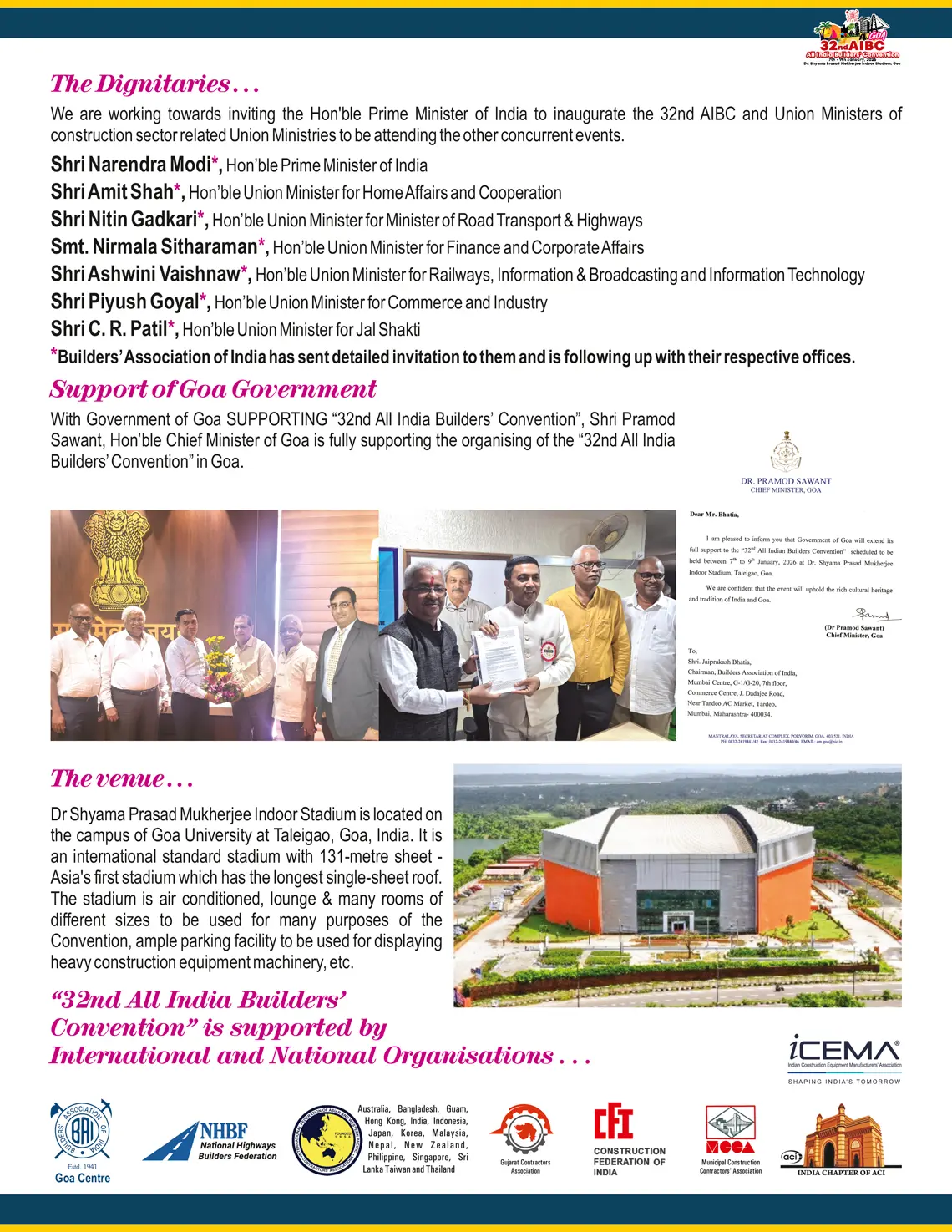 Panel Discussion would be on varied topics of construction sector – Taxation, Legal, Machinery, Methods, Materials, etc. The outcome of the Knowledge Sessions and Panel Discussion would form part of the ‘Resolutions’ of the 32nd AIBC.